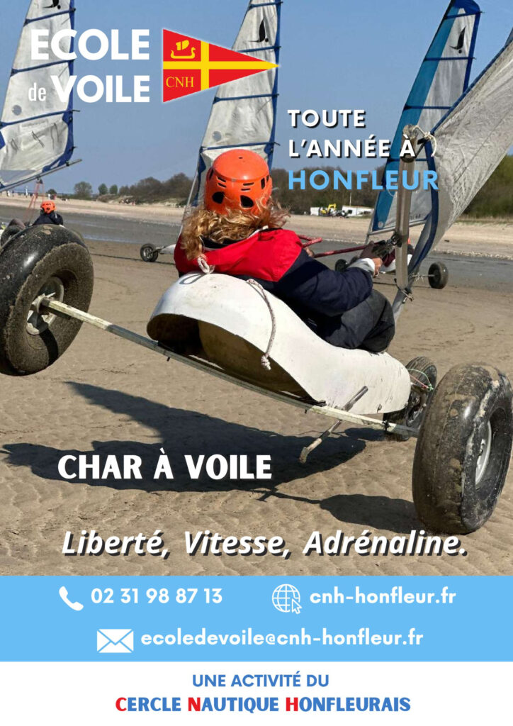 Dès 12 ans, venez vous initier au Char à voile à Honfleur. Seule école de voile de Normandie à proposer en Juillet et Août des séances d’initiation de 1h30, encadrées par des moniteurs diplômés.