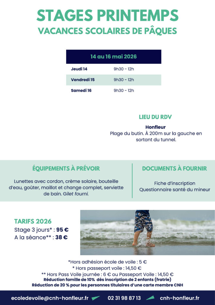 Cercle Nautique Honfleur – Ecole de Voile – 8 Rue Saint-Antoine – 14600 Honfleur – Tél. 02 31 98 87 13 – ecoledevoile@cnh-honfleur.fr