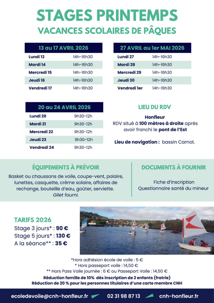 Cercle Nautique Honfleur – Ecole de Voile – 8 Rue Saint-Antoine – 14600 Honfleur – Tél. 02 31 98 87 13 – ecoledevoile@cnh-honfleur.fr